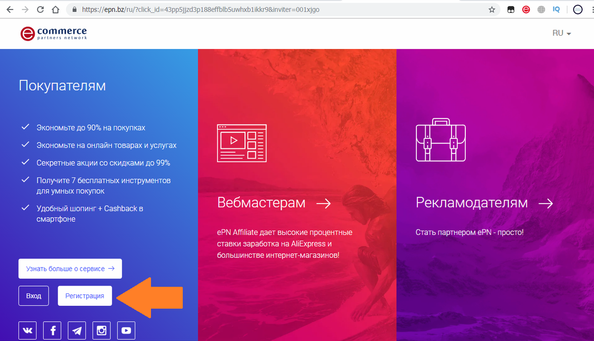 Сегодня большое число людей покупают товары через интернет. Мои многие знакомые, также просят заказать разные приблуды на AliExpress. Недавно узнал, что можно еще получать и кэшбек с этого. После регистрации уже сделал, больше 20 покупок на сумму более 100 долларов. Более 60 долларов из них по просьбе друзей. Сейчас ожидаю посылки и еще 15 долларов лежат в виде кэшбека на сайте. На них закажу игрушку для дочки, сейчас пока выбираю. А теперь пошаговая инструкция для регистрации. 1. Заходим на сайт epn.bz 2.Если Вы просто заказываете товары, то жмите "регистрация" 3. После этого заполняем поле "почта" и задаем пароль 4. После заполнения формы, переходим в основное меню, где справа есть ссылка для подключения кэшбека на товар. 5. Обязательно сделайте недорогую тестовую покупку, как это сделать Подписывайтесь на канал, ставьте руки вверх и помните о нас.