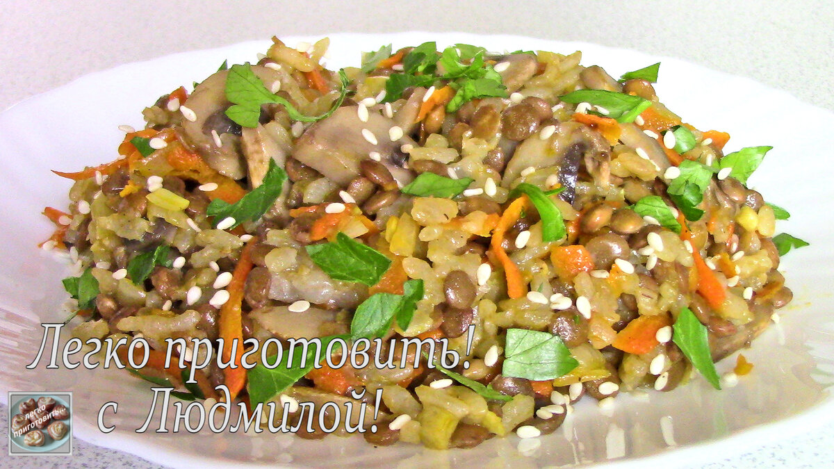 Чечевица и рис с грибами. Постное (вегетарианское) блюдо.