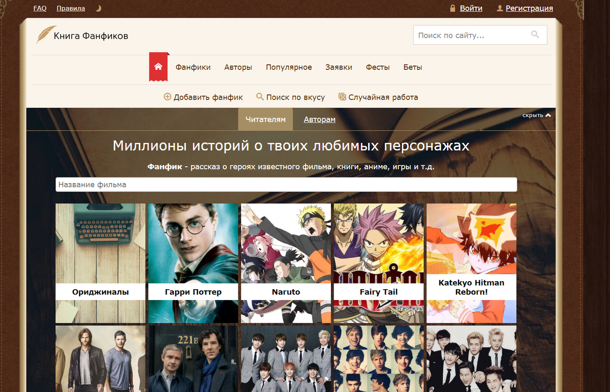 Многие фанаты какого-либо фандома, да и просто любители чего-нибудь прочесть оригинального наверняка знают этот замечательный сайт. Он был основан в 2009 году, совсем не так давно, верно? И обрёл весьма большую популярность. Каждый день там создаются около 100 новых работ или глав, а количество зарегистрированных пользователей достигает нескольких сот тысяч. Но есть и люди, не знающие подробно об этом сайте и его деятельности, имеют некоторые негативные представления о нём и, убеждённые на все сто процентов в их верности, готовы спорить с теми и оскорблять тех, кто любит этот сайт. Давайте взглянем на несколько стереотипов о фикбуке, с которыми каждый знаком. 1. На фикбуке сидят исключительно дети. У некоторых сложилось представление о том, что на фикбуке сидят в основном девочки лет, скажем так, 9-12. Однако говорить о целевой аудитории фикбука довольно тяжело, так как статистики подобной там нет. Но можно взглянуть в общем на людей, сидящих в фикбуке. Им увлекаются не только под