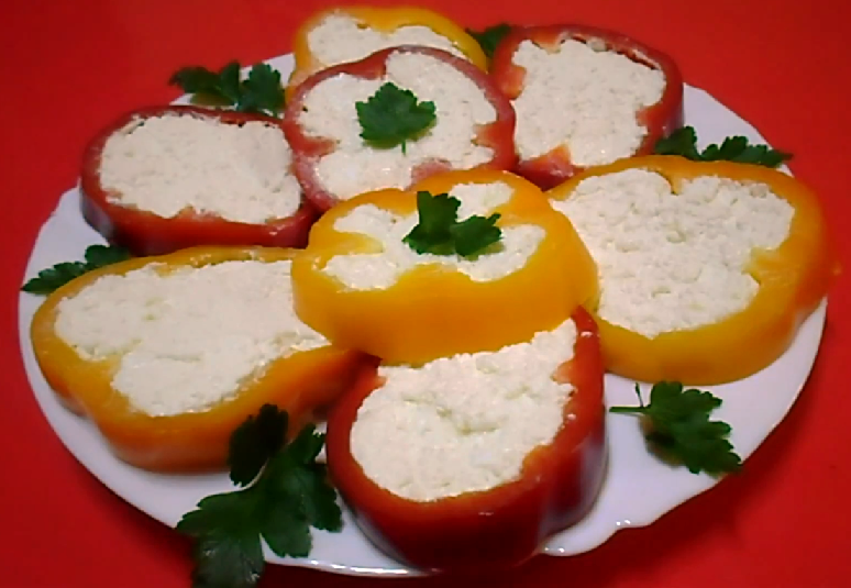 Очень простая и в то же время вкусная и красивая закуска! На любом праздничном столе такое блюдо будет являться настоящим украшением, так как выглядит очень ярко и нарядно. А приготовить его проще простого, причем продукты используются самые простые. Перчики лучше всего брать насыщенных и разных цветов. Весь процесс приготовления можно посмотреть в моём коротеньком видео-ролике, который размещен в конце публикации. Нам понадобится: 500 грамм творога парочка болгарских перцев ярких цветов примерно 2 столовых ложки майонеза (зависит от творога) 5-6 зубчиков чеснока соль - по вкусу веточка петрушки (для украшения) - по желанию и возможности. Интересные рецепты вкусных закусок и салатов на праздничный стол можно посмотреть еще здесь: Быстрый и вкусный салат "Весенний" - всего из 3-х ингредиентов Вкуснейшие рулетики из лаваша с плавленым сыром и яйцом - идеальная закуска на праздник и на каждый день "Белые тюльпаны" - просто идеальная закуска на праздничный стол Красивый салат "Грибна