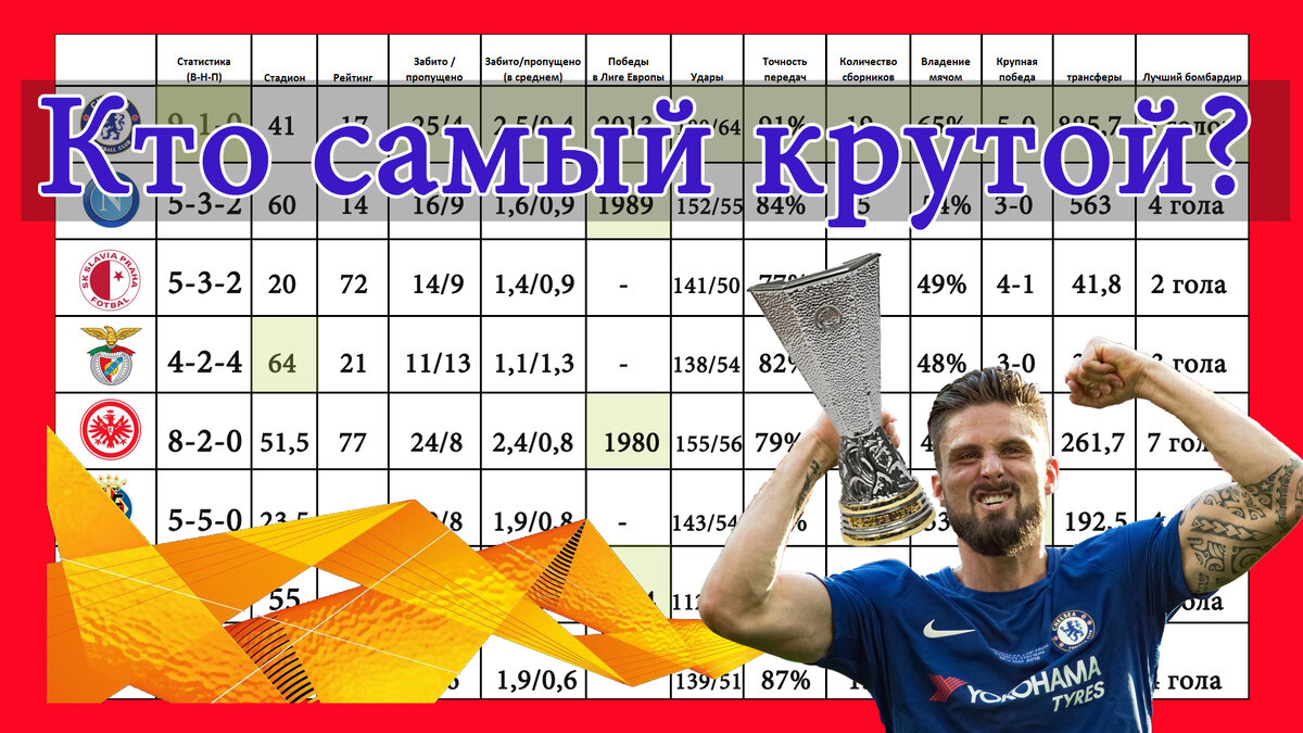 Привет друзья, для приготовления этого рецепта мы возьмем 8-мь четвертьфиналистов Лиги Европы. Добавим немного наград, пропущенных голов, статистику, трансферы и узнаем - кто самый крутой.