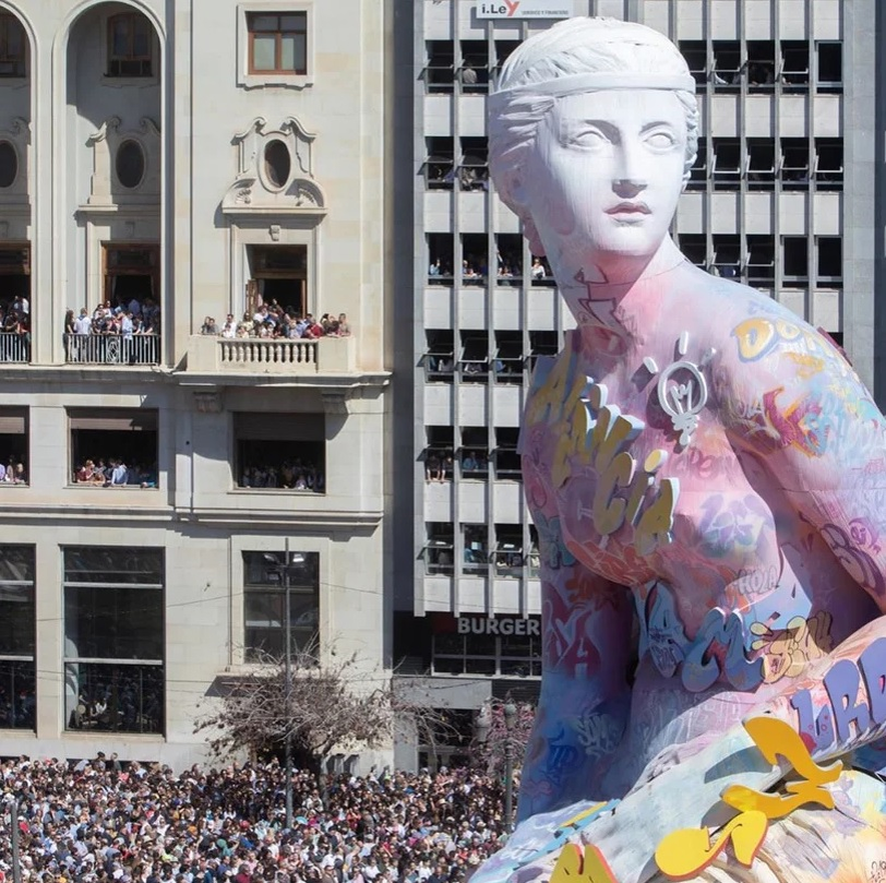 Огромная скульптура в стиле неоклассицизма, полностью покрытая граффити, появилась в центре Валенсии. Ее создал коллектив известных испанских уличных художников Пичи и Аво. Они изготовили и расписали изваяние только с одной целью ― увидеть, как оно сгорит. Их скульптура стала одним из самых оригинальных объектов ежегодного фестиваля Фальяс. Пичи и Аво работали над скульптурой целый год. В этом им помогала местная ремесленная компания. На роспись монументальной работы также ушло немало времени. Художники оставили на скульптуре традиционные граффити, местами добавив объемные росписи. Работа простояла на городской площади всего три дня, пока ее не придали огню. Испанский уличный дуэт часто обращается в своем творчестве к классическому искусству. Они смешивают разные стили стрит-арта, чтобы создавать масштабные неординарные работы. Сейчас некоторые их работы выставляются в галерее Plastic Murs в Валенсии. © Artifex.ru