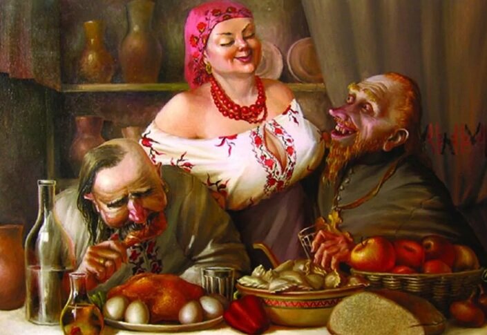 В таверне сидит за столом боярин. Ему сегодня повезло он продал весь свой товар. Такой хороший день решил отметить. Заказал практически всего из меню и водки. Наелся напился и в полном удовлетворении, упал лицом в салат и спит. Приходит в таверну интеллигент, садится рядом со столом где спит купец, подзывает официанта и делает заказ: · Будьте добры, гуся запечённую в духовке и ему в попу яблок нафаршируйте. · Что, что? - Вежливо попросил повторить официант. Естественно интеллигент повторяет заказ. · Будьте добры, гуся запечённую в духовке и ему в попу яблок нафаршируйте. И тут купец зашевелился, встал, изо всей мочи бьёт кулаком по столу и выкрикивает на всю таверну: · И мне нафаршируйте попу яблоками рублей так на 30. ******************************************************************************* Понравился анекдот ставь лайк ! и подписывайся!