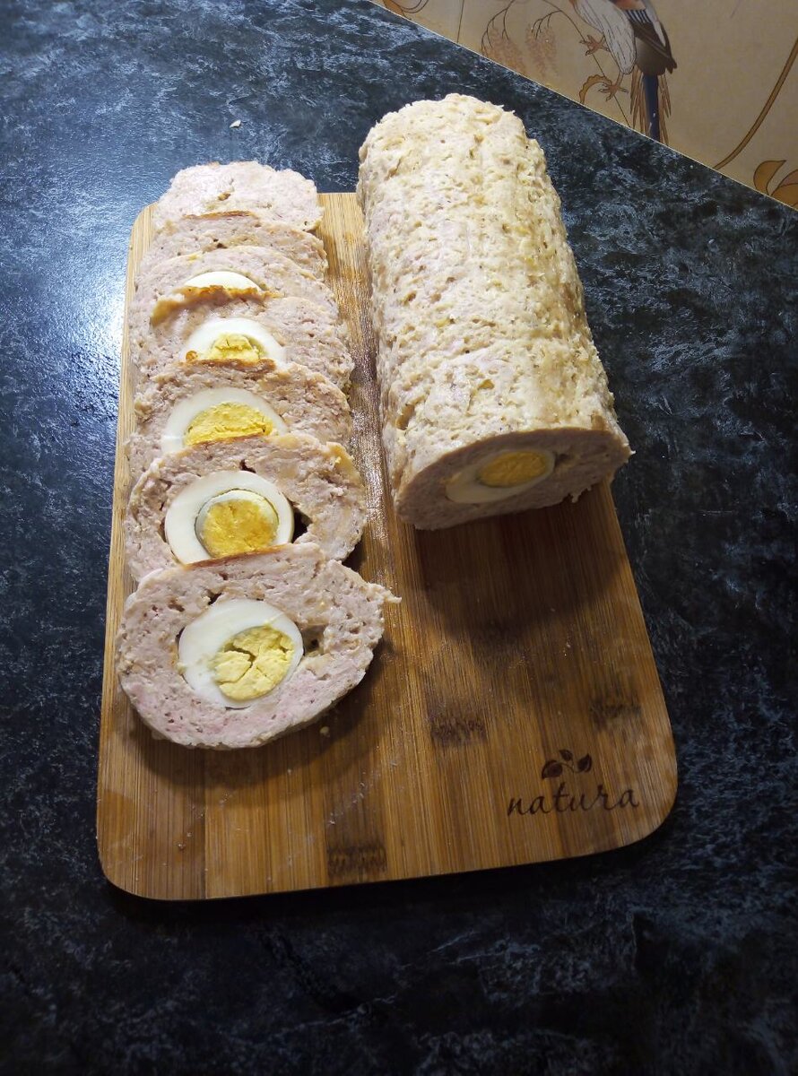 Куриное мясо по праву можно назвать универсальным продуктом, и которого можно делать множество кулинарных шедевров. И сегодня я хотела бы поделится с Вами одним из самых любимых в моей семье рецептов куриного рулета с яйцами. Скажу сразу яйца можно можно заменить на любую другую начинку, по Вашему усмотрению! Но давайте приступим. Для приготовления блюда нам понадобится чеснок головка , соль перец черный и 2 килограмма куриного филе! Для начинки 4 недоваренных в крутую яйца! Филе пропускаем через мясорубку с чесноком солим перчим по вкусу. Затем все это дело раскладываем на столе в виде пласта толщиной в большой палец и выкладываем предварительно отваренные до состояние жидкого желтка яйца( конечно очистив от скорлупы!) Формируем колбасу и дальше по Вашему усмотрению варим,жарим или запекаем! В моем случае я его варю, обвернув в пищевую пленку для сохранения формы! 20 минут в кипятке и нежный рулет готов! Особенности приготовления - их нет! Некоторые его готовит из пластов филе,