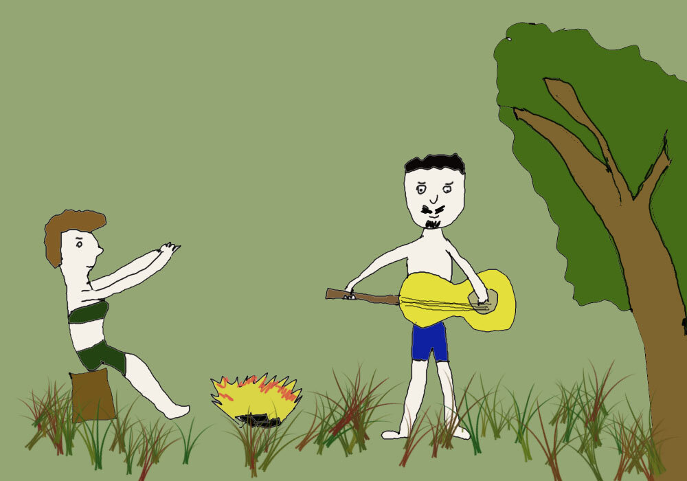 - А давайте, - согласились те. - Но лучше пойдемте к нам на полянку, у нас и музыка есть. Учителя согласились и пошли.