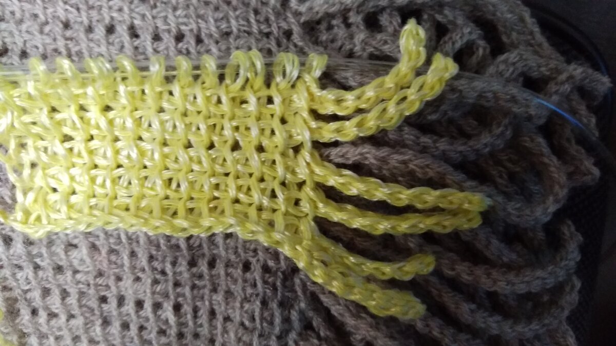 Привет всем творцам-рукодельникам-фантазёрам-художникам. Сегодня поделюсь опытом в тунисском вязании. Как связать бахрому? Сейчас в моде шарфы с бахромой вдоль всего изделия. С помощью тунисского крючка это сделать легко и просто. Покажу на небольшом образце. Все как обычно, нужно набрать цепочку из воздушных петель нужной длины (в данном случае ширины шарфа) + длина бахромы. И возвращаемся назад соединительными столбиками (на длину бахромы). Дальше само полотно вяжется как обычно тунисским способом. Когда обратным рядом вернемся к бахроме, то снова вяжем цепочку из воздушных петель на длину бахромы и опять возврат соединительными столбиками. Использую такой принцип вывязывания бахромы, можно воплотить в жизнь много идей! Будь то шарф, платок, палантин, покрывало, плед! Да что вашей душе угодно... просто, вяжется легко одним полотном, никаких лишних швов и соединений. Ставьте лайки, подписывайтесь! Рада и благодарна всем :) Удачи и теплой солнечной весны!