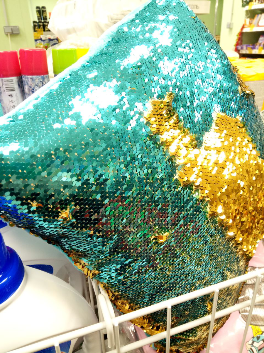 Качество не очень, нужно выбирать, не на всех подушках пайетки легко меняют направление.