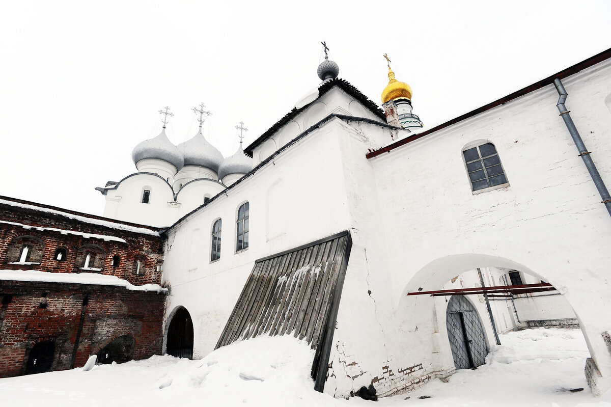 Софийский Кафедральный собор начали строить в 1568 году в кремле, со стороны реки Вологды. Это самое древнее сохранившееся в Вологде здание. Интересно, что Собор Софии алтарем обращен на северо-восток, тогда как при постройке храмов алтари обращаются на восход солнца. При жизни Ивана Грозного собор так и не был открыт для богослужений, так как по сказаниям, при открытии собора «нечто отторгнувся от свода и пад, государю повреди главу», царь опечалился и церковь не была освящена.