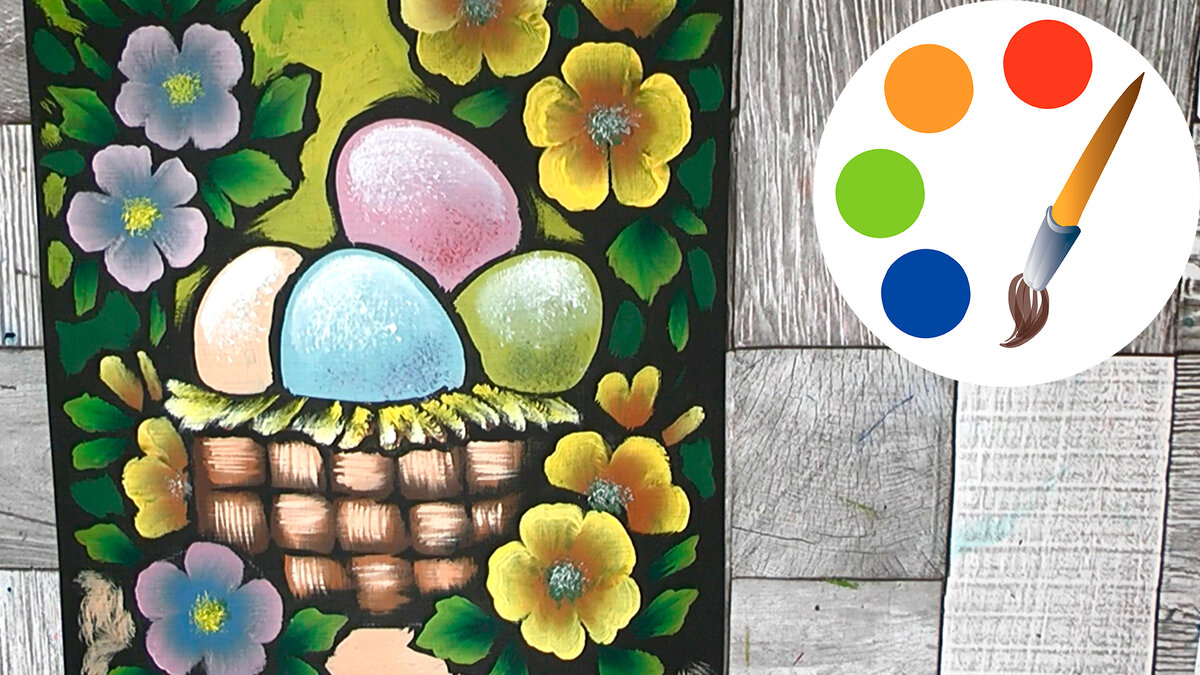 Скоро многие будут отмечать Пасху. В честь этого события мы нарисуем корзинку с пасхальными яйцами в технике One Stroke.