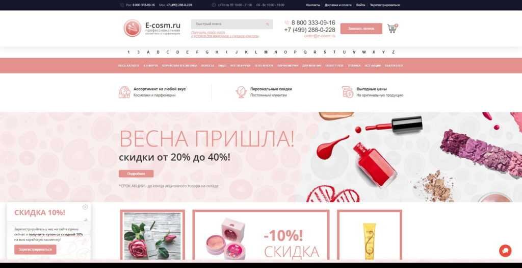 Важно постоянно проводить какие-то сезонные акции. У нас есть постоянная акция, это скидка 10% на корейскую косметику. Человек заходит, видит баннер, регистрируется получает скидку. К 8 марта мы сделали отдельный раздел, где можно купить готовые наборы подарков. Под каждый праздник, под каждое время года мы делаем отдельную акцию и ведём на неё отдельный трафик. Как показывает практика, люди очень охотно покупают по акции.