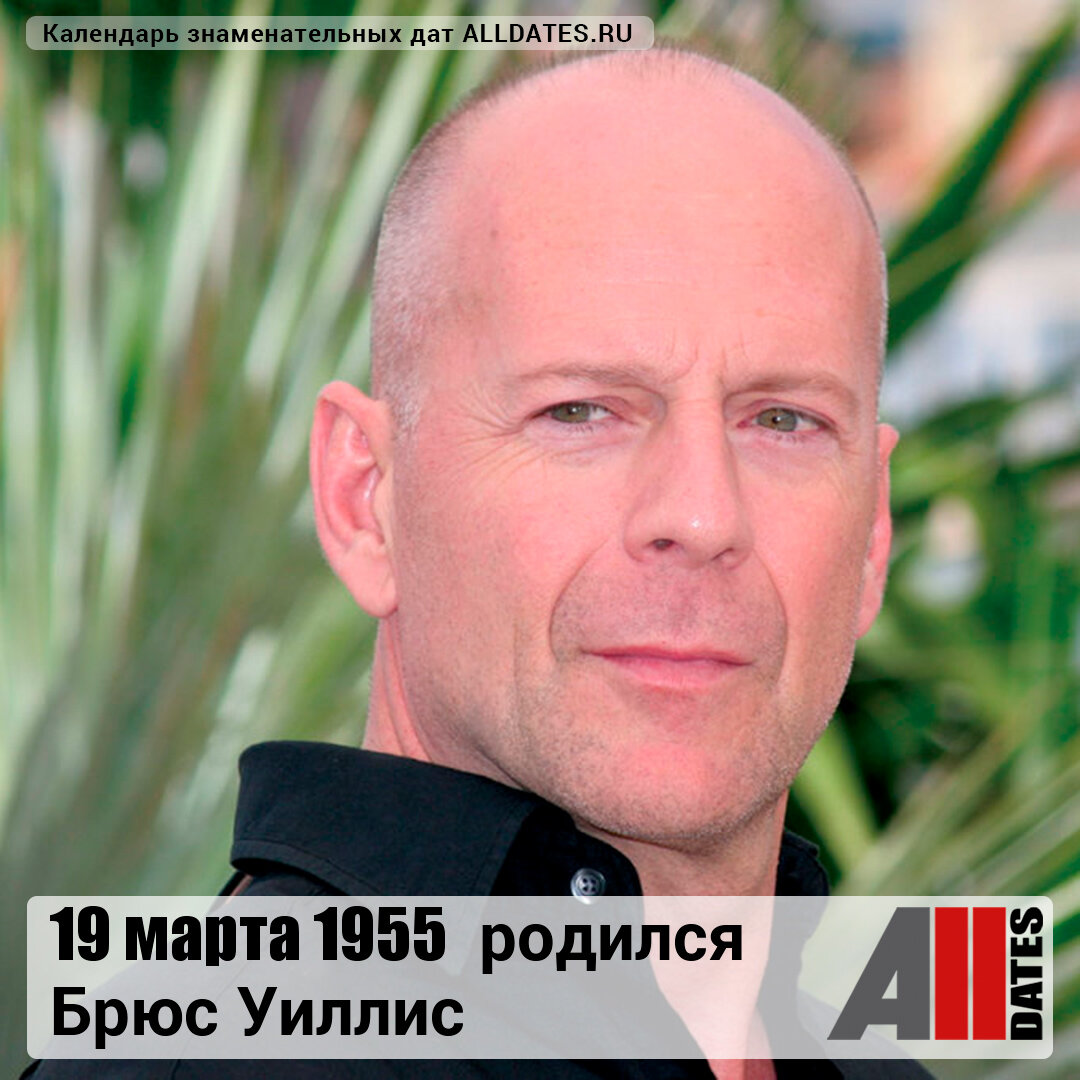 19 Марта 1955 Родился Брюс Уиллис (Bruce Willis), актер. Фильмы: "Армагеддон", "Крепкий орешек", "Криминальное чтиво" (Буч Кулидж), "Неудержимые" (Чёрч, агент ЦРУ), "Неудержимые 2" (Чёрч), "Пятый элемент". #БрюсУиллис #Уиллис #BruceWillis #Willis Календарь знаменательных дат из мира музыки, кино, театра и телевидения. #Календарь #AllDates #ДеньРождения #Родился #Calendar #Birthday #HappyBirthday #Kalender #Calendarium