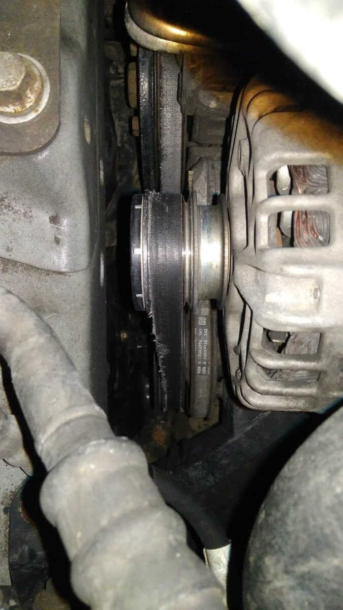 Вот и мой час настал. Ремень генератора вышел из строя. И я - везунчик!!! При запуске двигателя вечером, услышал писк. После 20 тысяч на XC70 даже мысль не промелькнула, что это у меня. Стал озираться, кто там рядом расшумелся. Стал трогаться и шум усилился, почувствовал запах жжёной резины и загнал машину обратно на парковочное место. Заглушил и под капот, а там всё печально. На ремне генератора уже нет двух крайних дорожек. И это показатель того, что ремень неоригинальный: оригинальный просто рвётся поперёк. Принял решение, что рисковать я не буду. И больше ни шагу. Поверхностная диагностика, для заказа з.ч. 1. Обрезал ремень. 2. Повращал натяжной ролик, для проверки на заклинивание. 3. Проверил обгонную муфту генератора. Небольшой её разгон, с резким оттормаживанием. Итого, только ремень, но риск неоправдан, так что в комплекте с роликом. И разумеется только оригинал. Можно отдельно, но удалось подобрать комплект. Volvo 31401425. 5.5 т.р против 7 т.р если раздельно. Заказал э