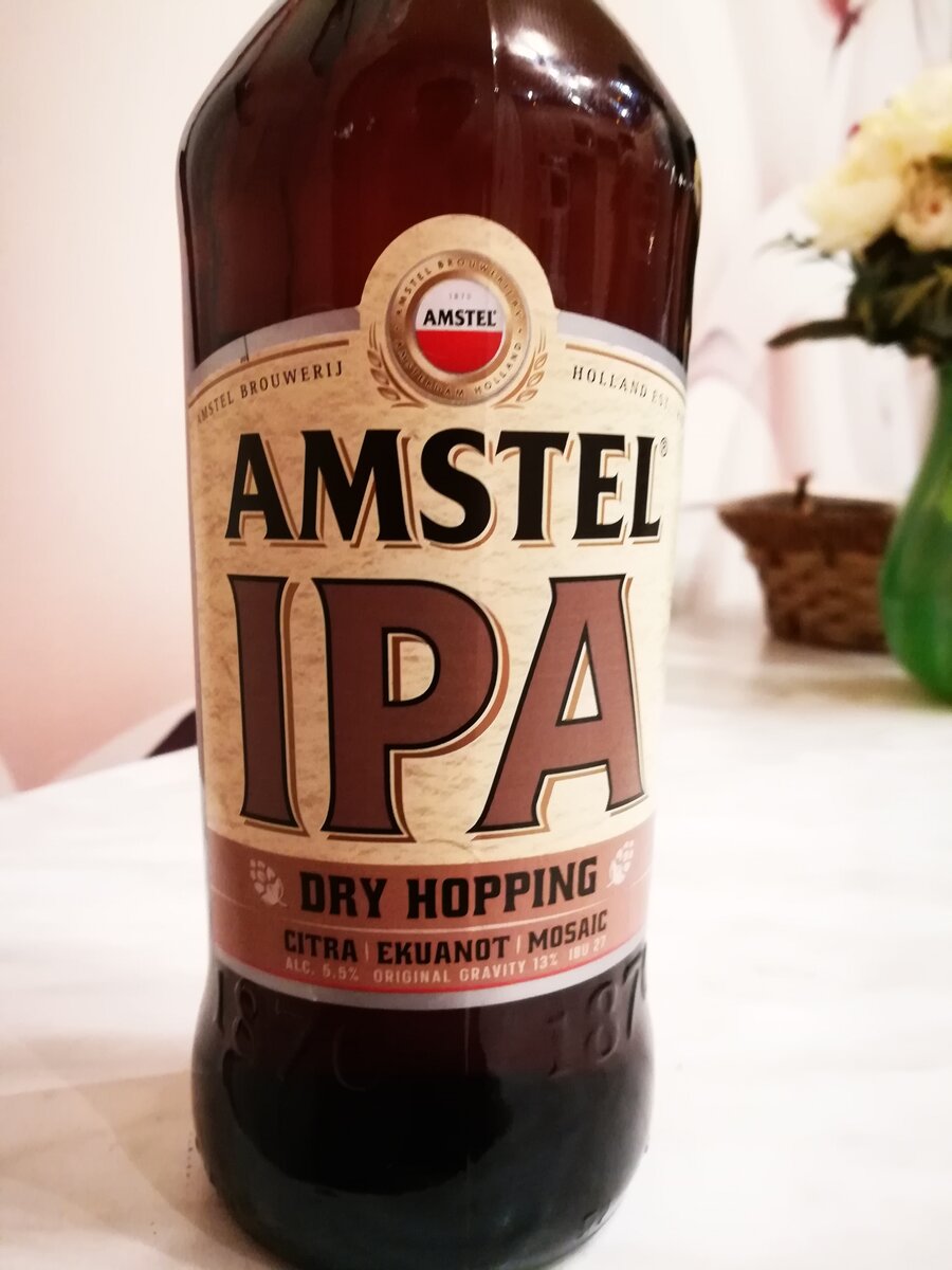 Всем привет! Периодически захожу в магазин "Бристоль" за недорогим пивом. Всегда проходил мимо Amstel IPA, потому что было сомнение по поводу вкусности этого пива. Все таки варит это пиво масс-маркет завод Heineken. Придя в очередной раз в магазин, решил взять на пробу бутылочку. Все-таки сколько можно на нее смотреть? Не попробуешь - не узнаешь, как говорится. На этикетке очень крупно написан стиль пива. Я считаю, что в этом плане завод поступает честно, не утаивая, что же там в бутылке скрывается. Цена за бутылку в магазине "Бристоль" около 60 рублей. Состав: вода, солод светлый, солод карамельный, солод жженый, хмель, хмелепродукты. На этикетке написано, что использовано холодное охмеление 3 видами хмеля (citra, ecuanot, mosaiс). Данные виды хмеля очень популярны среди пивоваров, потому что имеют очень сильную ароматику. При холодном охмелении хмель добавляется в ЦКТ на фазе дображивания или выдержки пива. Холодное охмеление не придает пиву горечи, но сохраняет нестабильные а