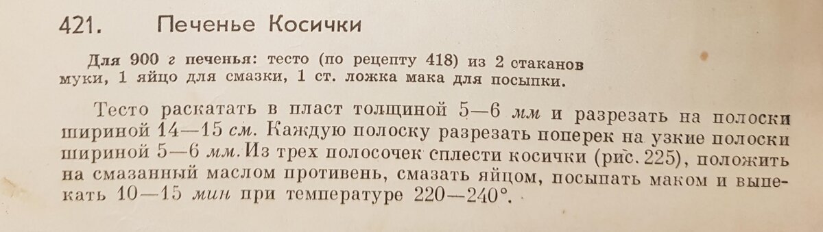 Я уже писала, что у меня есть кулинарная книга, выпущенная в 60-е годы, старая, очень потрепанная, но зато рецепты выверенные и удачные. Все базовые рецепты теста я беру из нее. Книжкой заинтересовалась дочка и тоже захотела испечь что-нибудь "советское" с моей помощью. Открыла наугад, выбрала "печенье косички". Косички, так косички, раньше я именно это печенье не делала, попробуем. Рецепт теста очень простой: 2 стакана муки 100 грамм масла 4 столовой ложки сметаны полстакана сахара 1 яйцо 1/4 чайной ложки соли, 1/4 чайной ложки соды ванильный сахар по желанию Маслу дать полежать при комнатной температуре. Мягкое масло перемешивать со сметаной, сахаром и яйцом, пока сахар не растворится. Затем добавить смешанную с содой муку (у меня 1 чайная ложка разрыхлителя) и замесить тесто. Если жидковато - понемногу добавлять еще муки, пока не перестанет липнуть к рукам, но останется мягким. Дальше мы его раскатали и сформовали, чтобы получилось, как советуют в книжке. Если не хочется лепить к