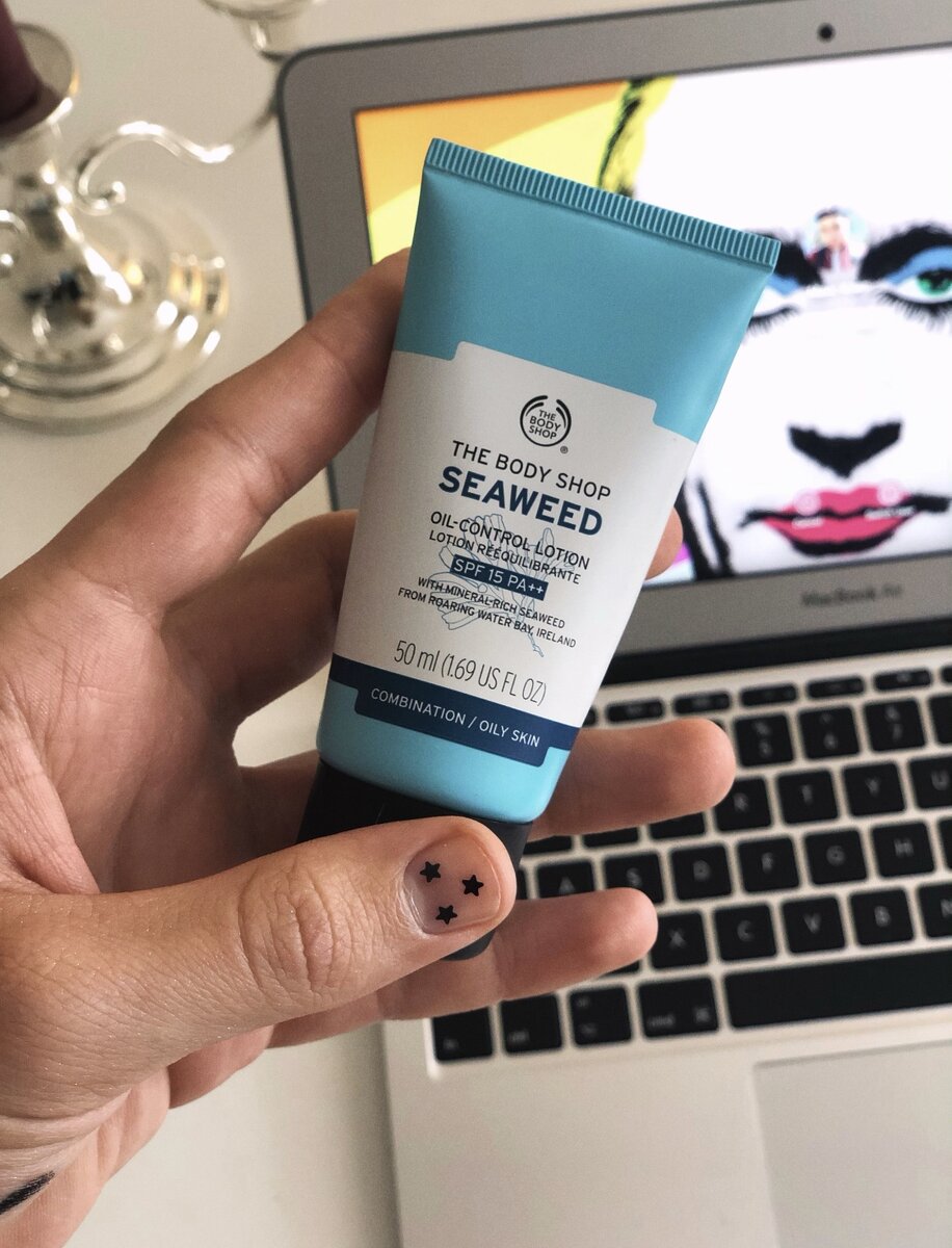 В этот раз речь пойдёт о продукте Seaweed Oil-control Lotion бренда The Body Shop для комбинированной или склонной к жирности коже. Я купил этот крем прошлым летом, поскольку он с пометкой oil-control и SPF 15, но пользоваться средством в жаркий период времени так и не смог. Потому как текстура у продукта плотная и в жаркие дни совершенно не комфортно носить тяжелые крема на своём лице, а если ещё под слоем макияжа, то это полная катастрофа, как и положено с побочным эффектом в виде прыщей. Собственно поэтому я отложил продукт в дальний угол своей косметички и вспомнил о нём только сегодня. Seaweed Oil-control Lotion, настал твой час! Коротко: продукт упакован в стандартную тубу, крышка пластиковая, хорошо фиксируется; ни единый миллилитр средства не просочится. Запах у крем-молочка свежий, приятный и стойкий, а потому иногда навязчивый, но в целом это не проблема. 💝 Теперь самое приятное: текстура нежнейшая, крем тает на коже и хорошо распределяется. Большое удовольствие наносить кре