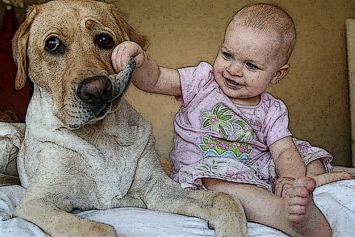 Так, улыбаясь, малыш и дошел до пса. И, радостно что-то пролепетав, схватил его за высунутый изо рта язык.