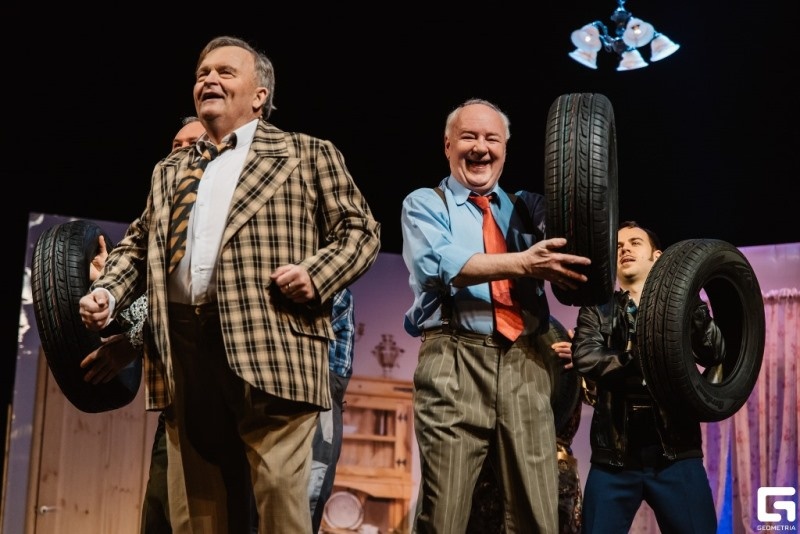 Ирина Погодина, которая много раз восхищала тверских зрителей талантом острокомедийного решения ролей, на этот раз по воле режиссера умерила для своей Веры Кузькиной яркость красок. Это заметно во второй половине спектакля, после знаменитого объяснения с супругом по поводу любовной записки, обнаруженной в кармане его пиджака. Явно недостает сатирического начала Аристарху Кузькину, роль которого исполнил постановщик спектакля Александр Сафронов. Конечно, соревноваться с памятной всем гениальной эксцентриадой великого Евгения Лебедева из товстоноговского спектакля практически невозможно. Но вопрос еще и в том, что Сафронов в роли пьяницы и хама выглядит неисправимо интеллигентно, выпадая из контекста компании сослуживцев-подельников.