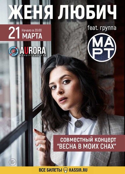 Совместный концерт «Весна в моих снах» Жени Любич и группы «МАРТ» - это смешение музыкальных стилей и направлений, создающее весеннее и радостное настроение.