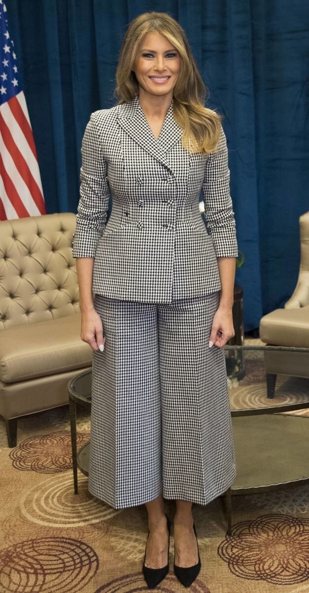 Образы первой леди США, которые ей не идут. И на старуху бывает проруха Кюлоты в клетку Найти в гардеробе Мелании Трамп безвкусицу, старомодную, банальную вещь почти невозможно. Однако и у нее бывают промахи с созданием аутфита. Например, этот костюм с кюлотами добавляет первой леди США полноты. Инфантильный розовый Скажем прямо, что еще 15 лет назад Мелания не отличалась большим вкусом и часто появлялась на публике в откровенных нарядах, демонстрируя свою грудь. За несколько лет до президентства мужа Мелания поменяла стилиста и стала выглядеть безупречно. Хотя платье с кружевными цветами узорами и в розовом цвете относит ее к стиль к былым временам. Жесткая горизонталь Мелания обладательница идеальных пропорций фигуры и на самом деле может позволить себе многое. Но оказывается и ей идет далеко не все. Наряд с розовым низом и верхом молочного топа делает ее плечи и грудь объемными, а воланы и бахрома по низу юбки дешевит образ. Стиль Бриджит Мелания редко надевает мини, хотя и в