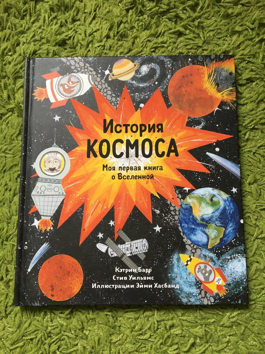 Привет! Сегодня я расскажу об очень классной книге издательства "Самокат" – "История космоса" от Кэтрин Барр с иллюстрациями Эйми Хасбанд. Как легко понять из заголовка, это краткая история вселенной для детей. Краткие сведения и наглядные рисунки помогут привлечь внимание ребёнка к теме космоса, планет, астрономии и других интересных штук). Текста здесь достаточно много, лучше уделить его чтению с полчаса. Некоторые иллюстрации покажу поближе. Для самостоятельного освоения энциклопедии ребёнком (и для забывчивых взрослых) здесь присутствует небольшой словарь. "История космоса" дорогая книга – на том же Лабиринте её можно купить от 777 рублей.