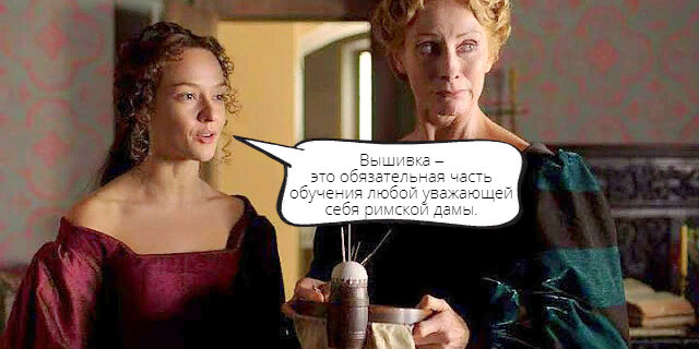 Лукреция вопит, что ненавидит Джулию, но вынуждена взять покорно пяльцы и продолжить обучение. И хоть в кадре не показана Лукреция за работой, но пяльцы с частью рисунка уже находятся в её покоях. Матушка решила переложить их на другое место.