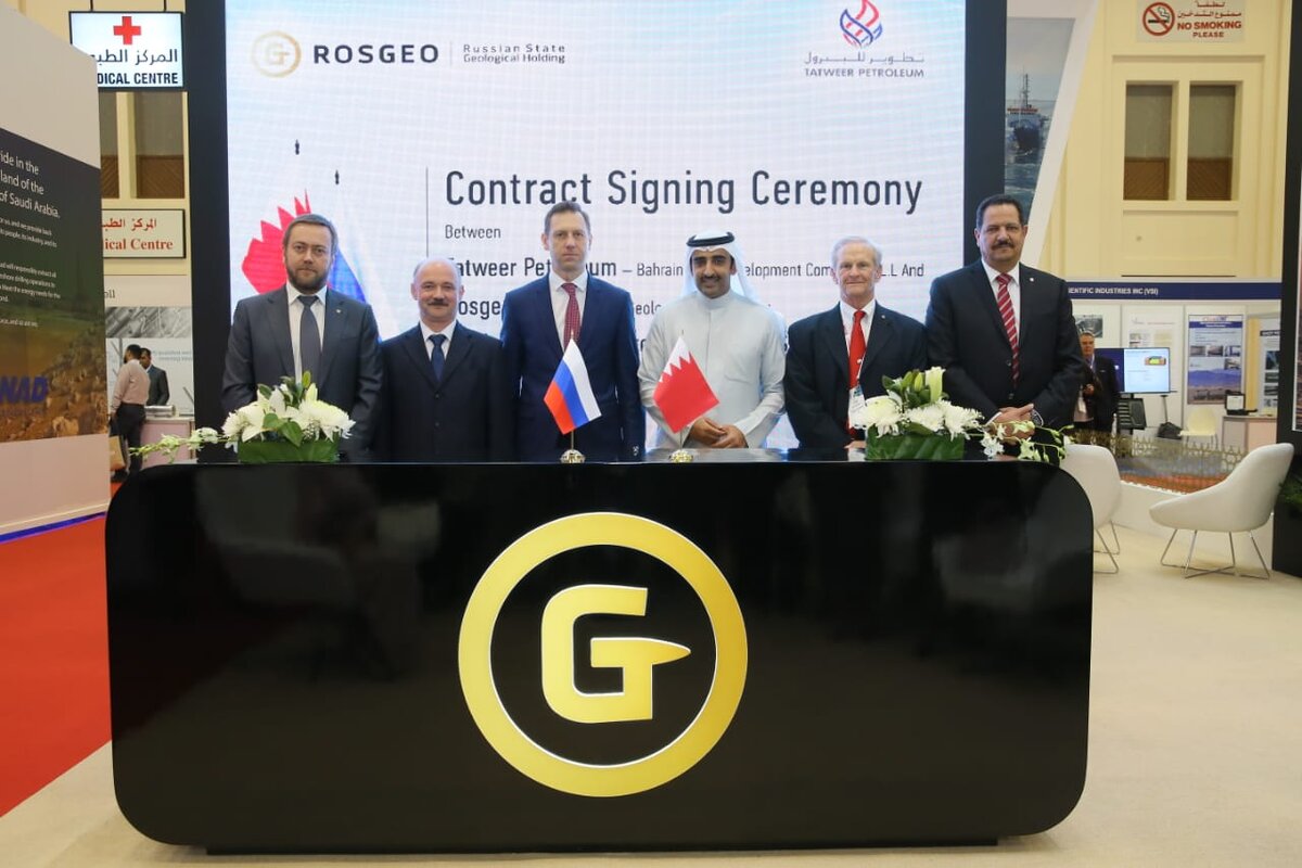 Сегодня в г.Манана (Бахрейн) АО Росгеология подписала контракт с Tatweer Petroleum, который обеспечивает выполнение задач в рамках её геологоразведочной программы на нефть и газ. Контракт подписан в ходе Международной Ближневосточной выставки и Конференции по нефти и газу. Согласно официальному документу, Росгеология выполнит комплекс морских и сухопутных сейсморазведочных работ, в том числе в транзитных зонах, включающий исследования с использованием методов сейсморазведки, гравиимагниторазведки и сейсмоакустики. Со стороны Королевства Бахрейн документ подписал Генеральный директор Tatweer Petroleum Джеймс Истлак, с российской – Генеральный директор – Председатель Правления АО «Росгеология» Роман Панов."