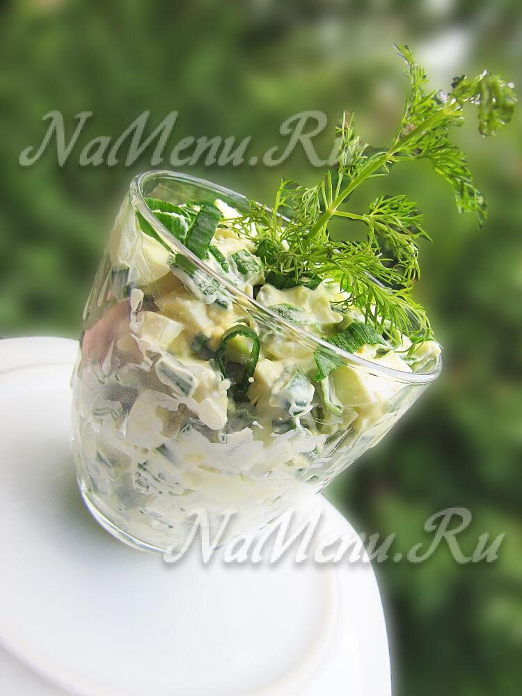 🥗Для приготовления понадобится: 1️⃣2-3 яйца; 2️⃣лук-порей - небольшой пучок; 3️⃣майонез (можно заменить сметаной) 🥚Отварим яйца в течении 5 мин., очистим, нарезаем кубиками 🍃Лук тоже нарезаем В посуде соединим яйца с луком. 🥛Заправим массу майонезом и перемешаем ложкой https://namenu.ru/3655/Salat_iz_luka_i_yaic_Vesennij/