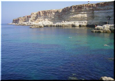 Пляж Голубая бухта- живописный пляж в западной части города.Здесь захватывающие виды и кристально чистая вода с отливающим бирюзовым дном. Также этот пляж привлекает дайверов,чистота воды для них- подарок судьбы.Вход в воду очень удобный,поэтому пляж подойдёт для отдыха с детьми. Здесь есть всё необходимое для отдыха- навесы,туалеты,торговые точки,кафе. Имеется пункт проката шезлонгов.Для детей работают водные батуты,лабиринты и др.