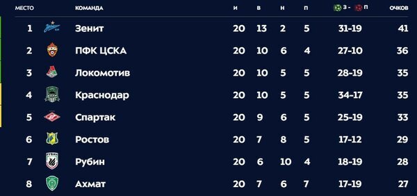 Последний матч. После возобновления сезона в РПЛ «Зенит» не проигрывает и несмотря на неудачи в последних очных матчах в Москве, в матче со «Спартаком» добился приемлемого для себя результата. Матч закончился со счет ом 1:1, на гол Глушакова, ответил Вильмар Барриос, для колумбийца это первый гол за «Зенит». Эта ничью стала второй в сезоне, при чем первая была также в матче против «Спартака». По итогам матча команду оштрафовали в общей сложности на 210 тысяч рублей, по 80 тысяч за скандирования и пиротехнику, еще 50 за то, что на трибунах сожгли атрибутику соперника. По итогам тура сине-бело-голубые упрочили свое лидерство, а квартет преследователей уплотнился и поменялись позициями. На данный момент на счету «Зенита» 41 очко у идущего вторым «ЦСКА» 36. Предстоящий матч. Матч 21 тура состоится после паузы на международные матчи, что накладывает определенные опасения, так как легионерам, предстоит трансатлантический перелет. 31 марта на стадионе «Газпром Арена» состоится матч с