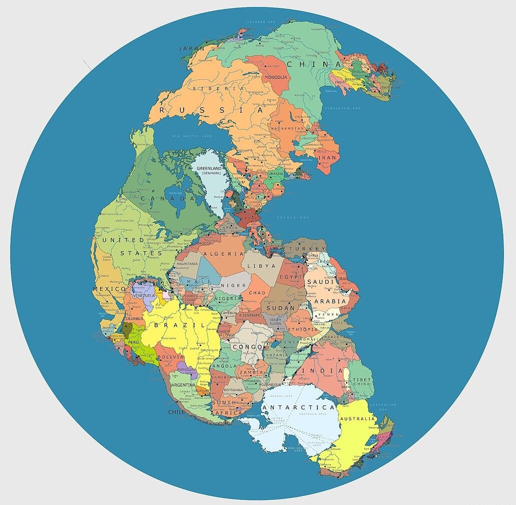 Пангея, была суперконтинентом, существовавшим во времена позднего палеозоя и раннего мезозоя. Он собрался из более ранних континентальных единиц примерно 335 миллионов лет назад, и начал распадаться около 175 миллионов лет назад. Пангея была окружена Мировым океаном под названием Панталасса, и она была полностью собрана к началу Пермского периода. В начале пермского периода Северо-Западная береговая линия древнего континента Гондвана (палеоконтинент, который в конечном итоге разделится на Южную Америку, Индию, Африку, Австралию и Антарктиду) столкнулась с южной частью Euramerica (палеоконтинент, состоящий из Северной Америки и Южной Европы). С слиянием Ангарского кратона (устойчивой внутренней части континента) Сибири с этим объединенным массивом суши в середине раннего Пермского периода собрание Пангеи было завершено. Катайсия, материк, включающий в себя бывшие тектонические плиты Северного и Южного Китая, не была включена в Пангею. Скорее, он образовал отдельный, гораздо меньший к