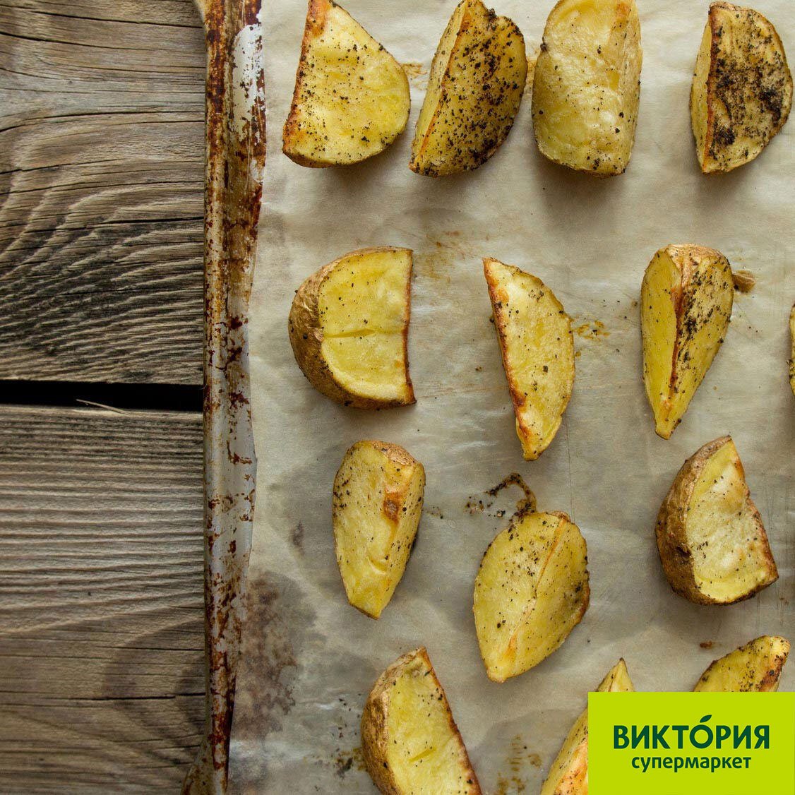 Шаг 2 Картофель хорошо перемешать с маслом и специями. Все дольки картофеля должны быть покрыты маслом, при необходимости добавить масла. Выложить картофель острым краем вверх на противень и выпекать при температуре 200С примерно 20 мин. Затем перевернуть картофель и продолжить запекать в течении 10 мин.