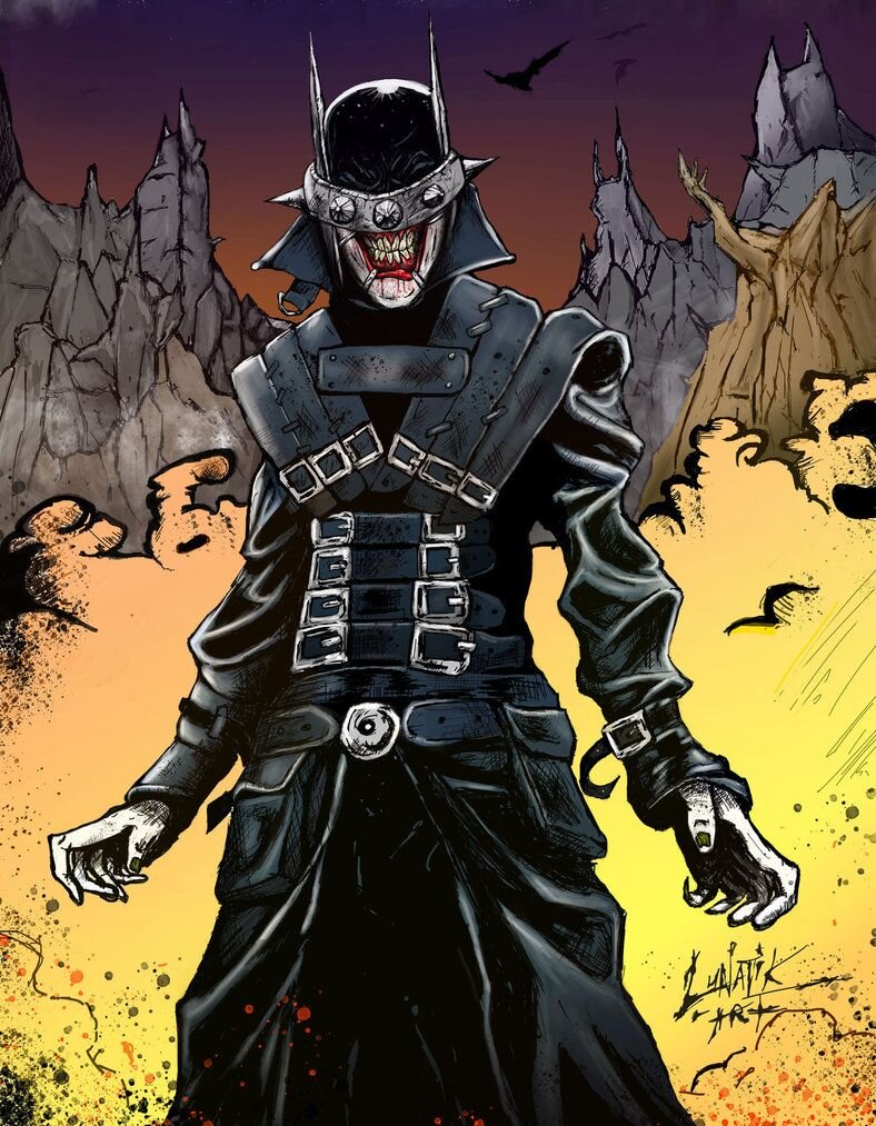 Сегодня я вам расскажу, наверное о самой ужасной версии Тёмного Рыцаря. Вообще существует множество злых версий Бэтмена, но эта, по моему мнению, выделяется больше всех. Одним из самых страшных ночных кошмаров Брюса Уэйна было то, что однажды он станет таким как Джокер. И в одном из комиксов тёмной вселенной DC “Dark Nights: The Batman Who Laughs (2017) #1” это всё-таки произошло. Однажды Джокер взял город под свой контроль. Он убил всех врагов Бэтмена и начал издеваться над прохожими. Джокер начал убивать родителей, проходящих мимо с детьми. А детей, заражал специальным токсином, который превращает их в безумцев, подобных ему. Это вынудило Бэтмена пойти против своих принципов и убить Джокера. Когда Джокер умер, то из его тела вышел токсин, который заразил Брюса. В итоге токсин изменил сознание Бэтмена в такое же состояние, как и у Джокера. Бэтмен сходит с ума. Он убивает своих соратников Бэтгерл, Красного колпака и Найтвинга. Своего сына, при помощи газа он превращает в себе подобн