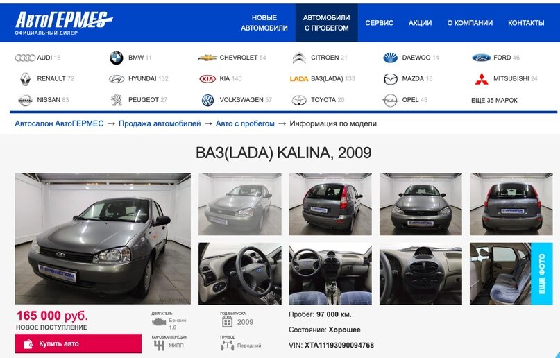 Мы проанализировали подержанные автомобили, выставленные на продажу у крупного автомобильно дилера. Некоторые автомобили уже удалены с сайта дилера, поэтому приводим тут скриншоты страниц.