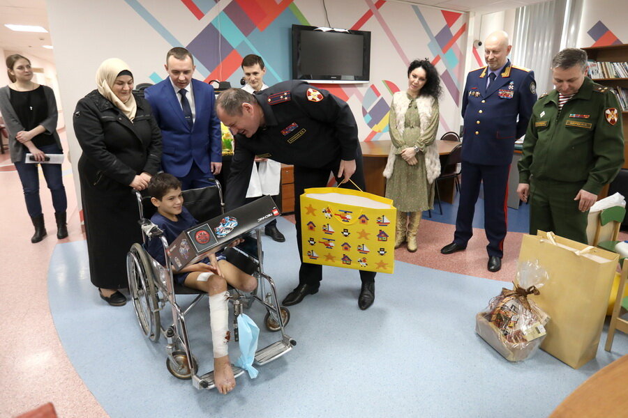 Вручили подарки и поздравили Ахмада Аль Иссу заместитель командующего Центральным округом войск национальной гвардии по работе с личным составом полковник Николай Щерба, начальник Главного управления Росгвардии по городу Москве полковник полиции Михаил Воробьев, старший помощник председателя СК России генерал-майор юстиции Игорь Комиссаров, заместитель председателя совета по культуре Росгвардии Сабина Цветкова, офицеры центрального аппарата Росгвардии, кадеты МосПКУ им. М.А. Шолохова войск национальной гвардии РФ и Кадетского корпуса Следственного комитета России имени Александра Невского. Справка
