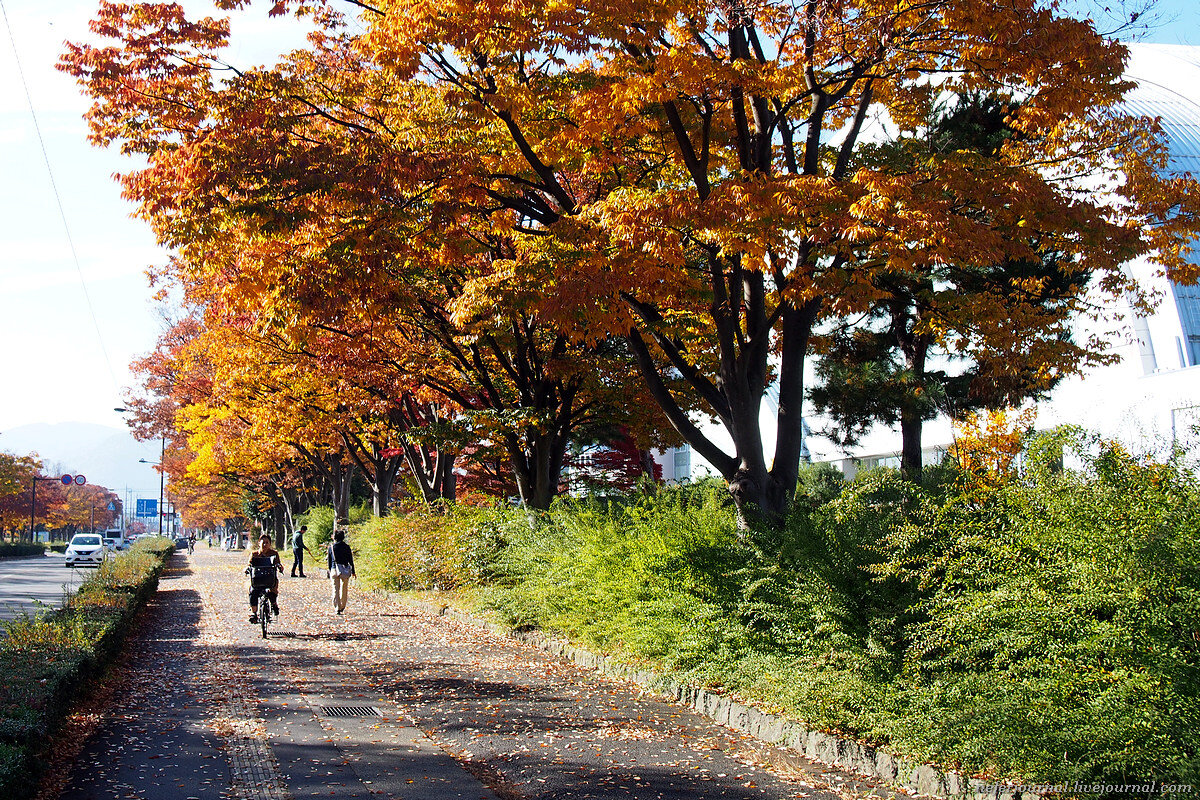 Стадионы находятся далеко друг от друга. Они разбросаны по городу в трех разных местах. Плюс еще горный кластер. Сначала я поехала к группе сооружений, которая расположена недалеко от станции Асахи. Там находится пять спортивных объектов.