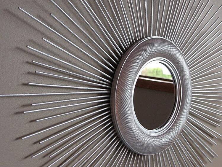 Представить современное жилище без такого важного атрибута человеческого быта, как зеркало, невозможно. Помимо выполнения своего основного предназначения, оно стало оригинальным украшением любого интерьера. Для украшения своего дома можно приобрести подходящий экземпляр в любом специализированном магазине, а можно, приложив некоторые усилия, украсить уже имеющиеся изделия при помощи подручных средств, создав уникальные вещи ручной работы. Деревянные лучики Обновить старое зеркало круглой формы, и придать ему новый вид, можно при помощи обычных деревянных палочек. Все что для этого нужно, закрепить деревянные шпажки с изнаночной стороны зеркала в виде лучиков при помощи силиконового клея. При желании, палочки можно окрасить акриловой краской, После полной просушки, обновленным изделием можно украсить любое помещение, за исключением мест с повышенной влажностью. Пластиковые лепестки Оригинально украсить зеркало можно при помощи ненужных пластиковых ложек, срезав с них ручки, и получив св