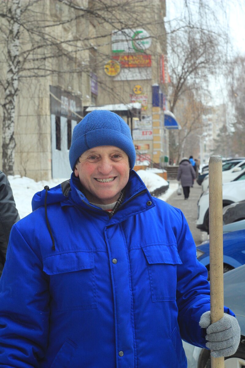 Араму 56 лет, работает дворником один год и два месяца. Это незаменимая городская служба, хоть и убираются везде, даже на экваторе. Главное чтобы ценили. Я всегда привожу пример: как относятся к трубочистам? Они очень уважаемые и почтенные граждане. Даже король где-нибудь в Италии или Швеции, встретив его, может подойти и поздороваться с ним, пожать его руку, выразить свою благодарность за работу. Вроде бы не престижная, но настолько важная профессия. Соответственно хочется, чтобы народ ценил не только в денежном смысле. Пришли бы люди, которые не только хотят заработать. Если человек у себя в квартире или у себя в доме — «грязнуля», то конечно он и к городу будет так относиться. Многие жалуются, что мало урн в городе. Есть люди, до-пустим, которые ездят на машине и выбрасывают мусор в окно. Это не оправдание. Любой мусор можно сохранить, принести домой и выкинуть в урну, а потом всё пойдёт через си-стему утилизации. Не надо искать оправдания и поощрять свою лень. Это же хамское отнош