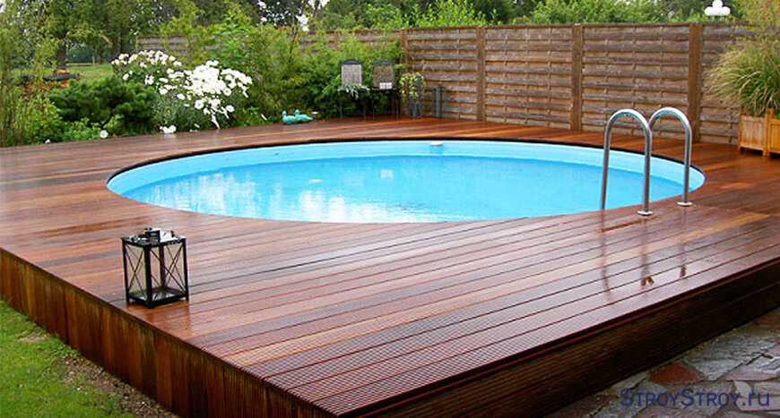 Было бы желание, и уже через две недели на дачном участке появится не только полноценный бассейн, а целая рекреационная зона, играющая доминирующую в ландшафтной композиции владения.