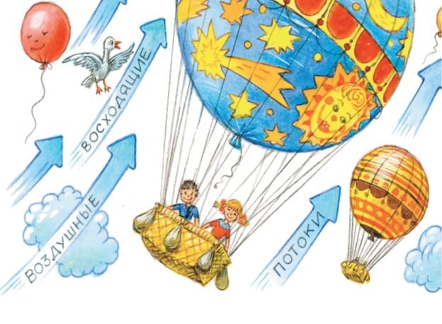 — Да. Воздушные шары с помощью горелки наполняют горячим воздухом, и этот воздух, стремясь вверх, поднимает вместе с собой шар и привязанную к нему корзину с людьми. Так же поднимается и тёплый воздух от земли, нагретой солнышком. Только мы этого не видим: воздух же невидимый.