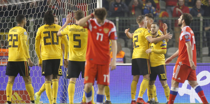 Доброго времени суток любители футбола! Вчера 21 марта прошел первый тур в рамках квалификационного раунда между сборными Бельгии и России. К сожалению команда сборной России одержала поражение в этом матче со счетом 3:1. Наша сборная не порадовала результатом в первом туре Чемпионата Европы 2020-го года проиграв в первом матче. Счет в матче был открыт на 14-ой минуте отличился полузащитник Юри Тилеманс (Бельгия), который нанёс точный удар от линии штрафной. Спустя две минуты Денис Черышев (Россия) пробил по пустым воротам из-за ошибки голкипера сборной Бельгии. К сожалению первый тайм сборной России не удалось сохранить с ничейным результатом, Эден Азар (Бельгия), заработал пенальти после фола со стораны Юрия Жиркова (Россия), который сам и реализовал. Конечной точкой в этом матче был гол на 87-ой минуте, Эден Азар (Бельгия), оформил дубль в матче. А на 90-ой минуте Александр Головин (Россия) получил вторую желтую карточку и был удален с поля. Более подробно о матче вы можете