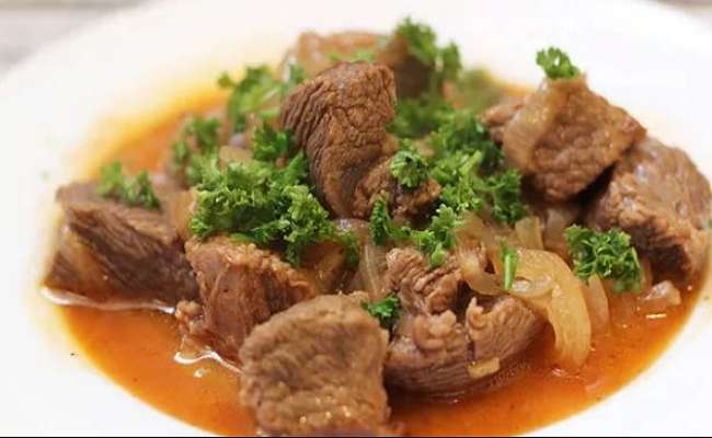 Рецепт гуляша из говядины с подливкой на сковороде Это вариант который должен быть в копилке у каждой хозяйки, любящей готовить. Такой обед никогда не надоест вашей семье. Для его приготовления подойдёт любое мясо. Старая будет говядина или молодая, блюдо получится в любом случае. Если в мясе много прожилок, не старайтесь их все скрупулезно удалять. Просто готовьте такую говядину подольше, а жилки и пленочки придадут блюду нужную консистенцию, похожую на желе. Что понадобится: Лук и морковку чищу и мою. Лук нарезайте произвольно, как вам нравится. Морковь тоже можно соломкой нарезать, можно и потереть. Промываю кусок мяса и обсушиваю бумажными салфетками. Порезала небольшими кусочками по 2-3 см. Сразу ставлю на самый большой огонь толстостенный сотейник. Наливаю растительного масла. Любители могут порезать мелкими кусочками сало и когда вытопится жир, жарить на нём мясо. Когда раскалится, выкладываем кусочки говядины полностью покрывая всё дно. И пусть так обжаривается минут 5-7, пок