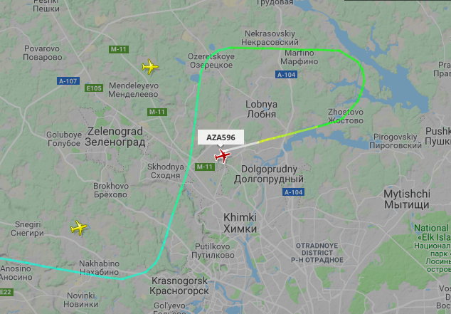А дело в пробках, точнее в авиационных пробках. Когда 5 самолётов прилетают одновременно к Шереметьево, то все одновременно они не садятся. Например, садится только какой-то один из них, а остальные начинают кружить над аэропортом (как стервятники над жертвой). Затем после того, как первый самолёт сел и освободил полосу диспетчер разрешает следующему самолёту совершить посадку. И дальше по кругу, вновь прибывшие самолёта встают в конец очереди и также начинают кружить и ждать своей очереди.