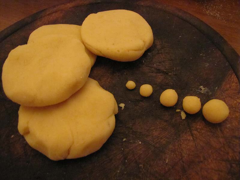 Кукурузную муку засыпают в кипящую воду, перемешать и варить до вязкого состояния. Добавляют немного сахара и накрывают для того чтобы тесто упрело. После того как каша остынет ее необходимо перемешать с мякишем белого хлеба (на 2 порции каши, 1 порцию мякиша). Тщательно перемешиваем ингредиенты. Такая наживка результативна при рыбалке на спокойной воде.