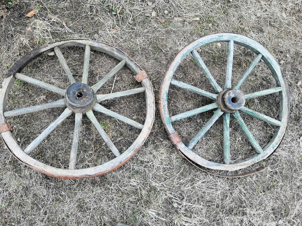 Эти колеса были деталью от средства передвижение которым регулярно пользовались до 20 века -это была телега или карета. ТЕЛЕГА - использовались для работы в сельскохозяйственной отросли на них перевозили большие предметы, тяжелые вещи. Специфика использования была предельно проста телегу цепляли к лошади которая и служила в качестве движка . Ее использовали и в качестве общественного вида транспорта как в городе так и в селах. КАРЕТЫ- в старинные времена чаще всего такой вид транспорта принадлежал высшему сословию так, как в карету запрягали сразу 2 и более лошадей и содержать их мог себе позволить только богатый человек. Уже в наше время такой вид транспорта к которому предназначались эти колеса мало используется, если только в сельских поселениях. Кстати вот такие колеса могут стоить не мало, но конечно же все зависит от их состояния и принадлежности.
