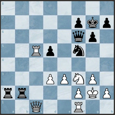 Найдите выигрыш за черных. У белых лишняя пешка. Они планируют разменять ферзей и с лишней пешкой побороться за победу. Однако ход черных и они выигрывают. Подпишитесь на канал и будет много новых, интересных задач. Решение публикую далее 1. ... Ладья b1. Если белым уйти ферзем, то Ке3 и Лf1. 2. Белые бьют на b1. Черные Конь бьет е3. 3. Белые Король g1, черные Ферзь f3. И мат не избежать. Подпишитесь и будет много новых, интересных, познавательных задач.задача 91 тут>>>задача 92 тут>>>задача 93 тут>>>задача 94 тут>>> задача 95 тут>>>задача 96 тут>>> задача 97 тут>>>