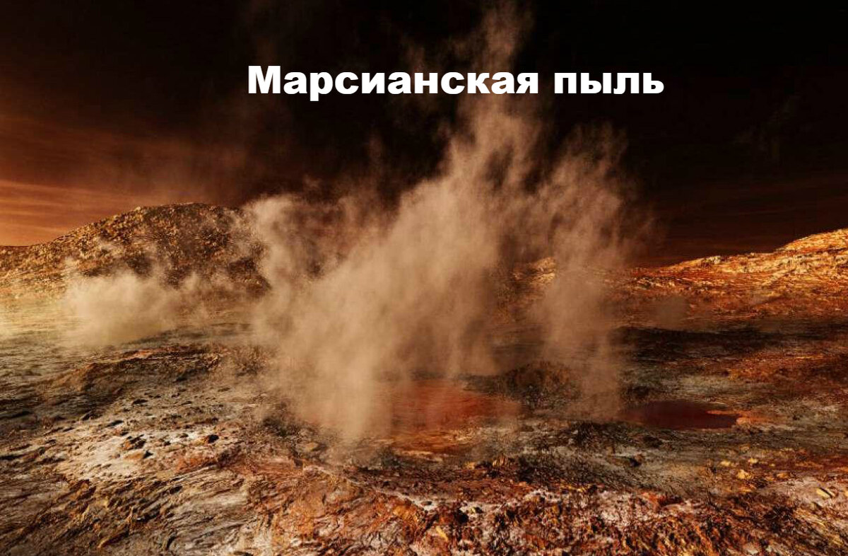 Марс - планета, которую исследуют учёные по всему миру, так как она является приоритетной планетой для последующего переселения с Земли. Однако, с каждым днём всё чаще и чаще учёные обнаруживают всё больше и больше неизвестных им процессов или событий. Оказалось, что помехи космических устройств вызывает именно марсианская пыль. На данный момент на Марс было отправлено два марсохода, которые "путешествуют" по планете. На днях учёные с помощью марсоходом решили исследовать грунт планеты. Учёные выяснили, что поверхность Марса в разных точках почти одинаковая, почти одно и тоже количество полезных веществ. Но единственное, что остаётся загадкой до сих пор это возникновение марсианской пыли. Помимо этого, пыль загрязняет марсоходы и от этого они ломаются. Более того, марсианская пыль впитывает большую часть тепла. В связи с этим, что сама планета холодная, а пыль нагревается, образуются ураганы. Недавно учёные подтвердили, что на Марсе был вулкан, который по размерам равнялся половине Ам