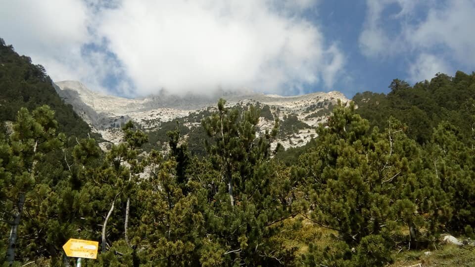 Сижу на ограждении источника. Шутки, песни с их стороны – веселая компания. Грек в сандалиях машет рукой, приглашая за стол в беседку, мол место есть, давай присоединяйся. Говорю, спасибо, я тут. Подходит, тот что в сандалиях, несет кулек. Пальцем в него тычет и поясняет мне что-то. Вижу изюм. На греческом я знаю лишь несколько простых фраз от здрасти - досвидания, до доброе утро - добрый вечер. Говорю: я по-гречески не понимаю. Он палец большой вверх, мол супер штука, гуд. Да я знаю. Я то и не сообразил его взять. Затарился печеньками и водой, советовали шоколад, но как его на жаре тащить. А тут изюм – гениально! Опять протягивает мне кулек и показывает, что отдает его, бери, супер, теперь уже указательным на вершину тычет, мол, там надо будет. Смеется, веселый такой. Ну как не взять. Горсть изюма – хорошее топливо, надо сказать. Забросив в топку пару горстей и попив воды, пошел дальше. Я все же думал, что это будет немного легче.