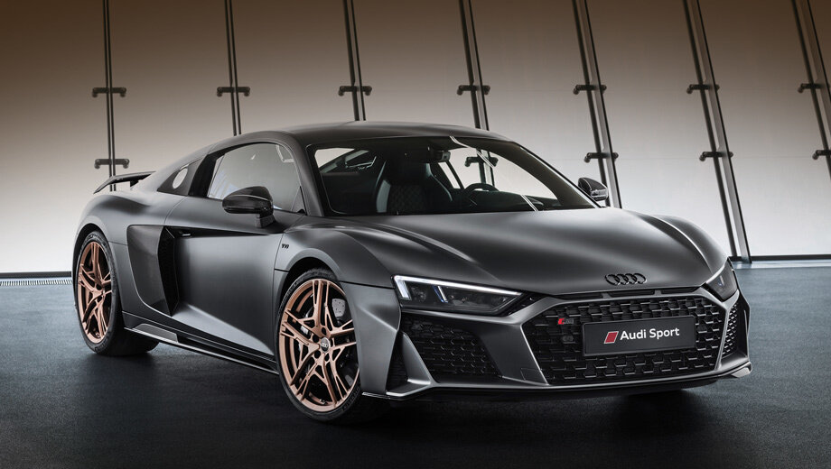 Audi анонсировала специальный выпуск почтенного спортивного автомобиля R8 под названием Audi R8 Decennium. Автомобиль является данью уважения к успеху двигателя V10 для Audi и выпускается ограниченным тиражом. Audi планирует построить всего 222 единицы в мире. R8 V10 Decennium имеет бронзовые цвета внутри и снаружи и поставляется только как купе. Покупатели могут выбрать уникальный цвет кузова для специального автомобиля под названием Daytona Grey, матовый эффект. 20-дюймовые колеса и впускной коллектор двигателя V10 отделаны матовой бронзой. Боковые ножи и корпуса зеркал выполнены из углеродного волокна. Если матовая серая краска не является вашей чашкой чая, автомобиль выпускается в цвете Daytona Grey с перламутровым эффектом; Сузука Грей, металлик; Цветочек серебристый, металлик; Mythos Black, металлик; Ascari Blue, металлик и Kemora Grey, металлик. Внутри автомобиля весь интерьер черный и инкрустирован блестящими углепластиками. Образец ромба стеган на сиденья, и внутри используетс