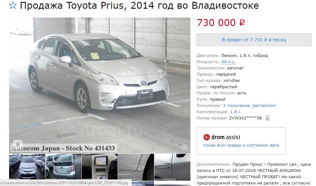 Одной из самых популярной машиной в Приморье можно считать Тойоту Приус всех поколений. Почему же они завоевали сердца Приморцев? Наверное все таки выбор был сделан из финансовых соображений. Надежность у Приуса выше всяких похвал, конечно если вы не купили битого и наскоро сделанного у китайцев для продажи или после такси. Купив авто из Японии приуса в хорошем состоянии вы будете кататься и радоваться. Расход у приуса не превышает 6 литров, при должном обслуживании и бережной эксплуатации расход может опуститься до 4-4,5 литров. А если приус плагин (PHV) и вы каждый день имеете возможность его заряжать то расход будет стремиться к нулю. Цена на Приуса в 30-м кузове (2012-2015 год) колеблется от 700 000 до 1 млн рублей. Любители лады гранты и калины (или другого автохлама) не надо писать что за эти деньги возьми новую и радуйся. Приус в отличии от Российского автопрома не поломается через 10 000 км. Ставьте палец вверх если считаете что будущее за гибридными авто.