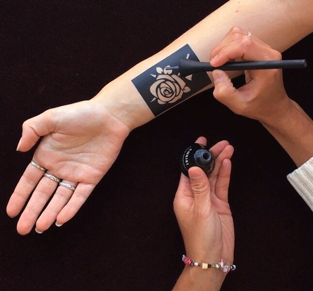 Шоваль Шавит Шапиро с детства знала, что, когда вырастет, продолжит семейный бизнес родителей, владельцев небольшой компании по производству натуральной косметики. Но девушка мечтала придумать что-то совершенно новое, необычное, так появилась парфюмерная татуировка. "Если аромат - это наша отличительная черта, то почему его нельзя увидеть?" - говорит Шоваль , описывая свое творение под названием Amkiri. Первый в своем роде аромат в чернилах, который при застывании превращается во временную парфюмированную татуировку в виде очаровательной черной розы. Сама татуировка водостойкая, продержится около двенадцати часов. Для ее создания понадобиться кисточка, трафарет и, конечно, ароматная тушь. Все необходимое есть в наборе, причем одна кисточка предназначена для нанесения чернил через трафарет, другой, более тонкой, можно рисовать от руки. Стоимость этого инновационного бьюти-тренда 50 долларов (практически 3300 рублей). К сожалению, пока чернила обладают одним единственным со